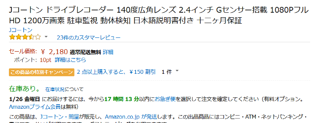 Amazonでドライブ・レコーダを購入し、レビューを投稿すると、全額返金してくれるらしい。