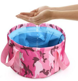 私は日焼け止めマスク、折り畳みバケツ、衣類収納袋。