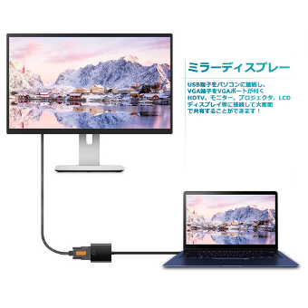 「USB 3.0 VGA 変換 アダプター」このUSB 3.0 VGA 変換 アダプターを利用して、USB端子をパソコンに接続し、VGA端子をVGAポートが付くHDTV、モニター、プロジェクタ、LCDディスプレイ等に接続して大画面で共有することができます!